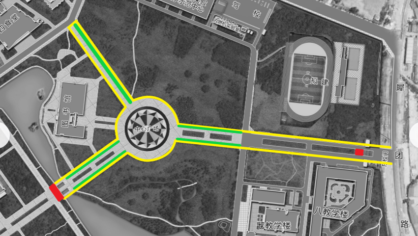 六、根据组委会的安排,在赛事区的一、二教路口,锦地苑东面路口设置两个人行进出通道,须在三教、一办公区和二办公区上班的老师凭工作证(含学校一卡通)或大运会工作证件进出。
