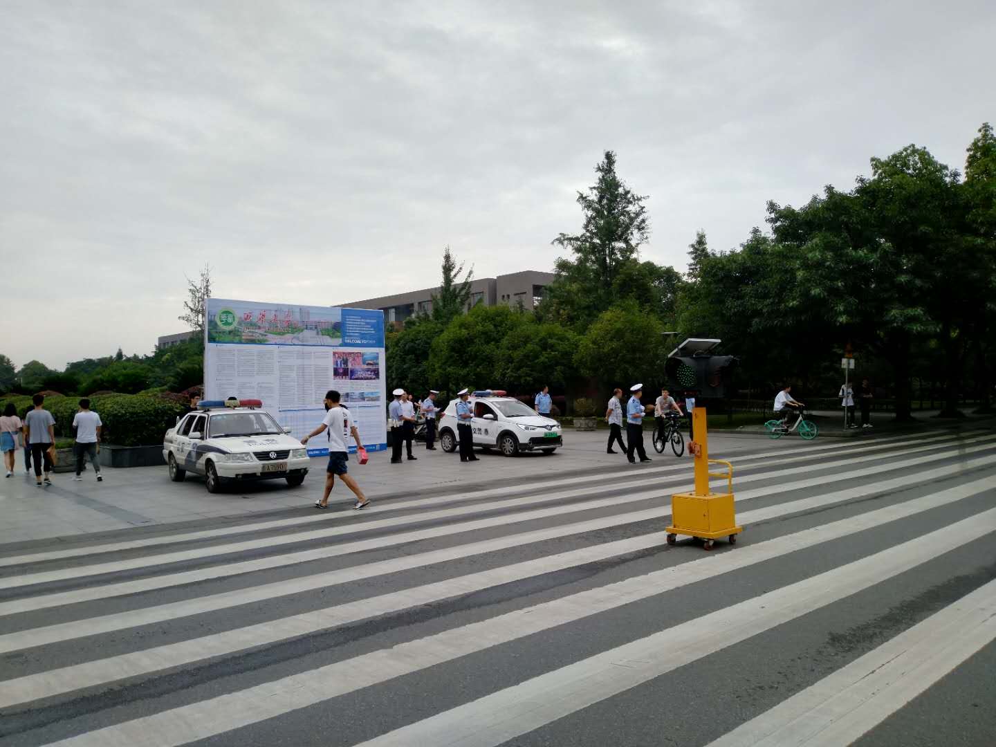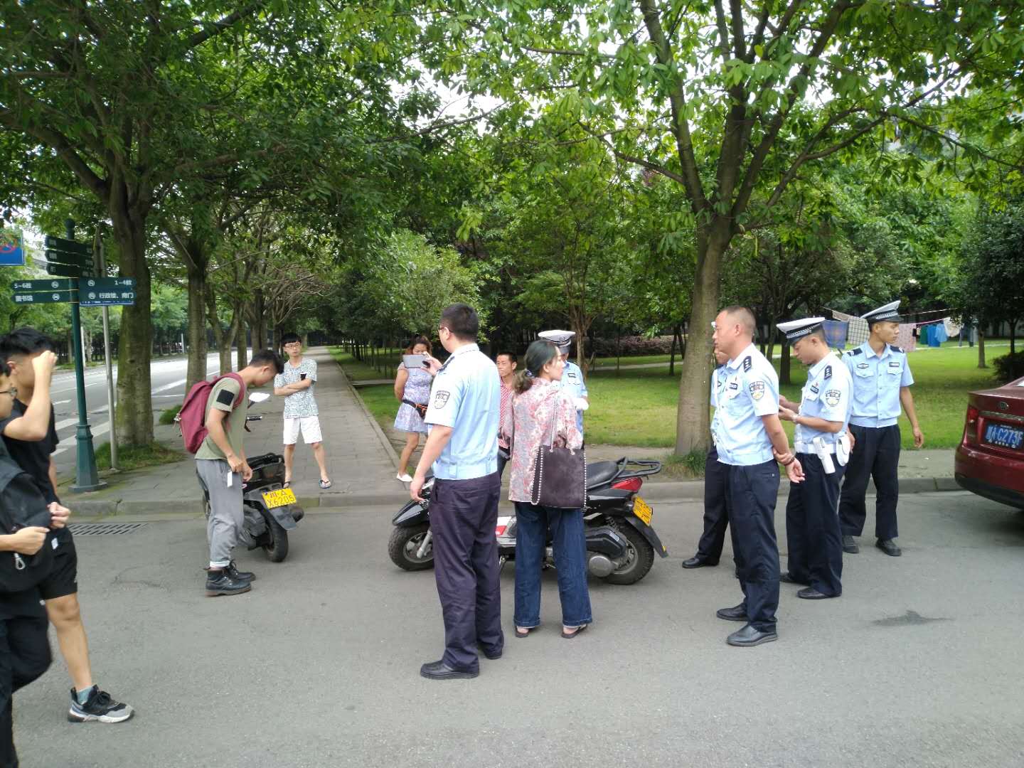 为确保校园交通整治方案落到实处,规范校园秩序,6月20日9时许,犀浦交警中队派出七名警官到校与校保卫处联合开展摩托车专项整治行动。