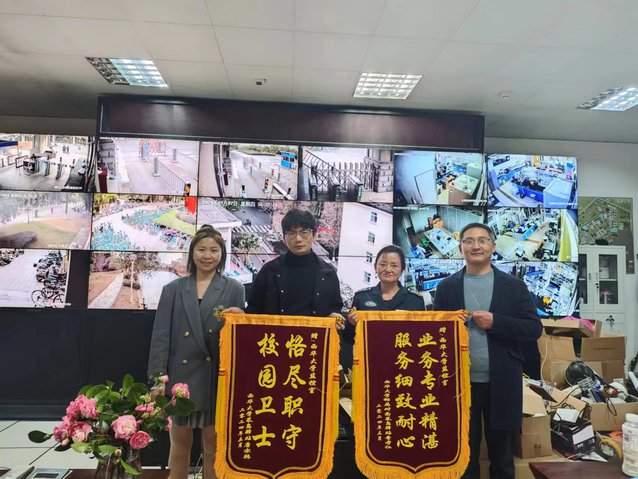2024年3月7日,学校快递服务中心为保卫部监控中心送来一面锦旗,感谢监控中心工作人员帮助找回在快递服务中心遗失的快递,表达他们对保卫部全力为师生服务的感激之情。