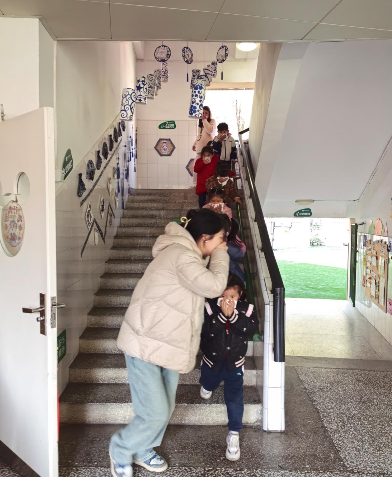 随着幼儿园警报声突然急促响起来,各班幼儿在老师紧张有序的组织下用湿毛巾捂住口鼻、弯下身体,在老师的指挥下按照指定的路线有序地逃离了“火灾现场”疏散到操场安全地点。整个消防演练做到了快速、安全、有序,总共时长用了1分45秒,没有发生受伤、遗漏受惊等现象。