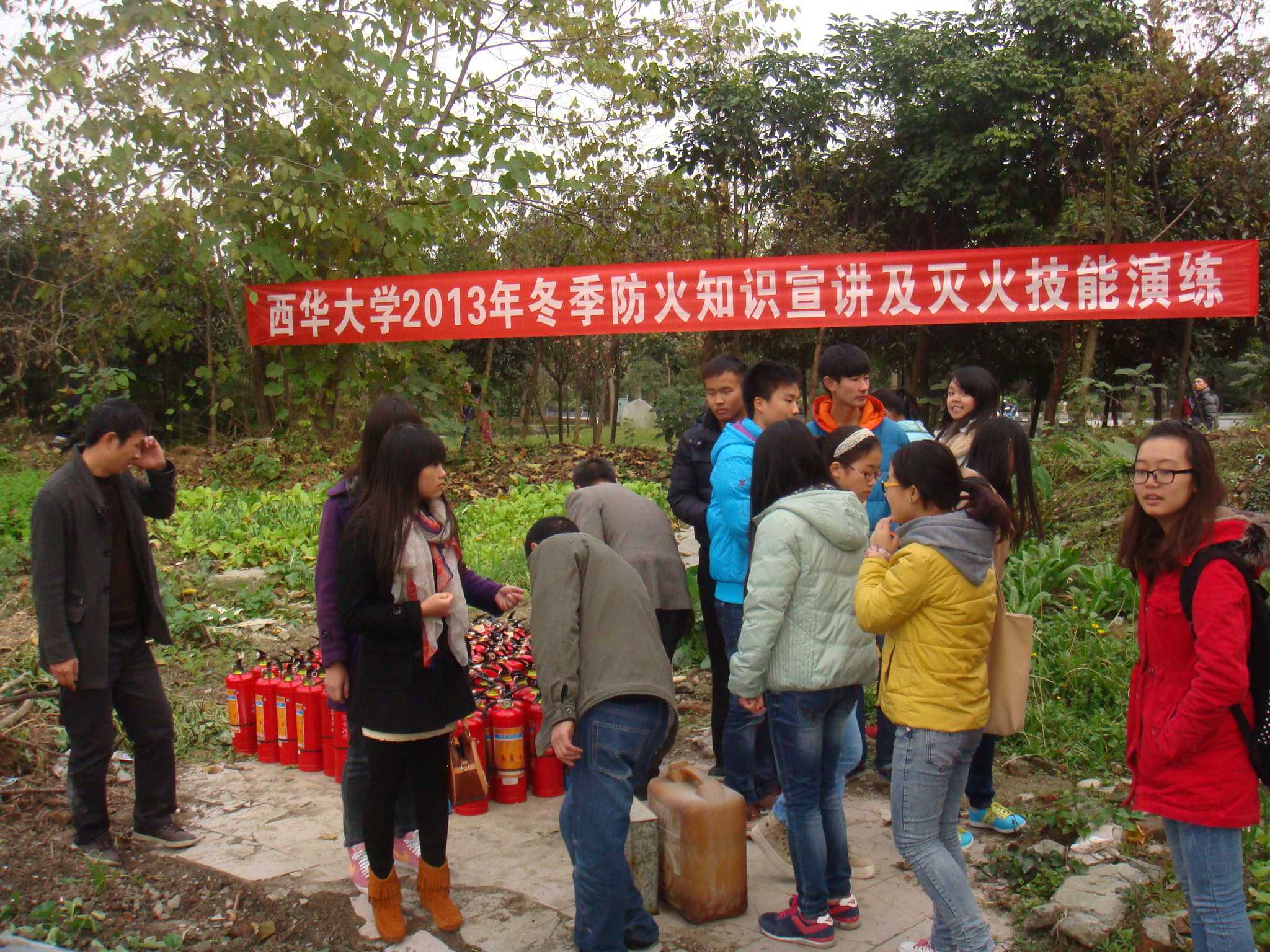 2013年11月28日下午,保卫处组织了冬季防火宣传教育专题活动,在学生9舍西面的广场上举办了消防安全展板,同时在2号桥头浴室后面空地上,为我校大一200余名新生进行了消防知识宣讲及灭火技能演练。