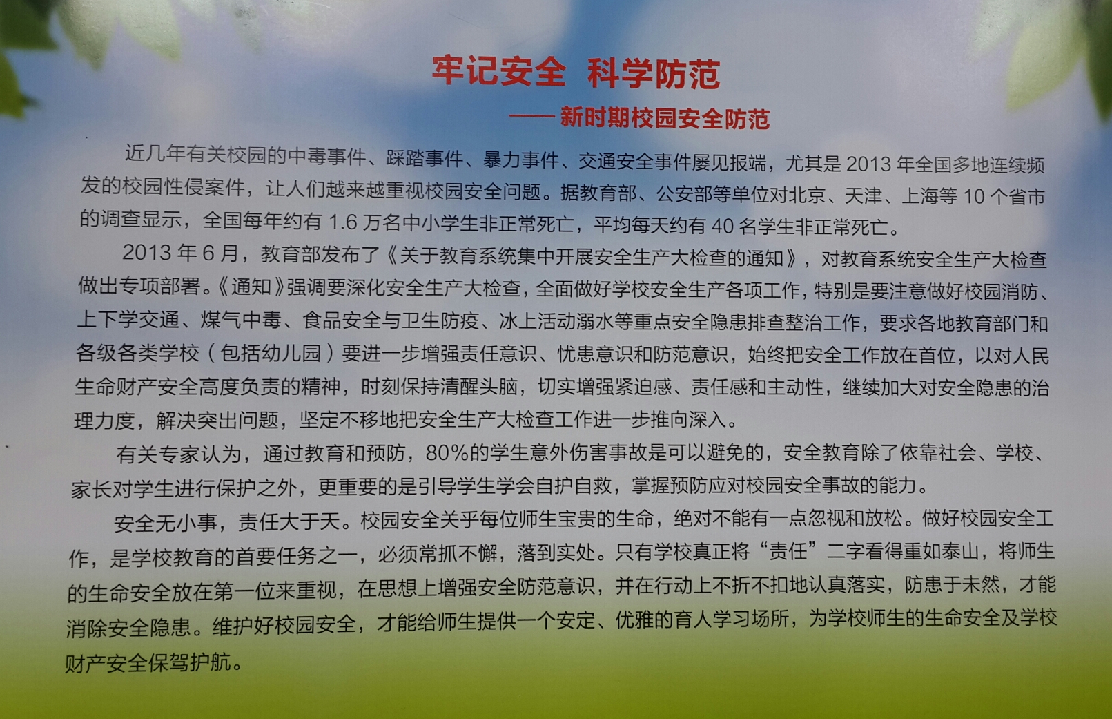 牢记安全 科学防范