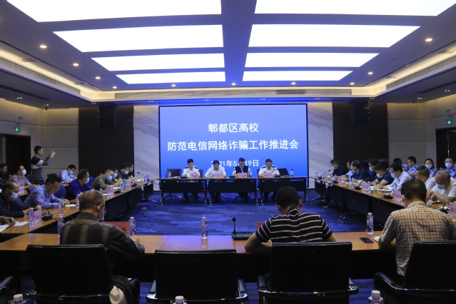 2021年5月19日,郫都区高校防范电信网络诈骗工作推进会在我校行政楼101室召开。郫都区红光派出所等11个派出所领导以及西南交大、成都工业学院等20余所高校代表参会,我校党委副书记王政书出席会议。