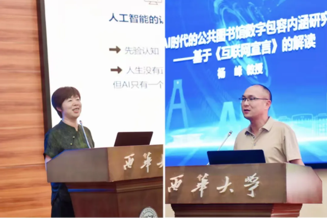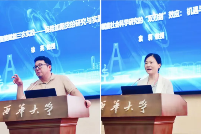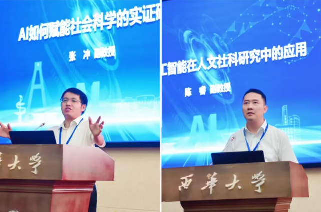 聚焦“AI赋能社科学术研究”主题,四川大学法学院教授徐继敏,西南财经大学工商管理学院教授徐亮,四川大学公共管理学院教授袁莉、李桂华、杨峰,电子科技大学马克思主义学院副教授张冲,伟德国际1946文学与新闻传播学院副教授陈睿分别作了以《生成式人工智能技术运用与宪法规范的发展》《人工智能赋能“三农”实践——保险加期货的研究与实践》《AI赋能社会科学研究的“双刃剑”效应:机遇与挑战》《AI赋能与赋能AI:社会科学研究的价值跃迁》《AI时代的公共图书馆数字包容内涵研究——基于<互联网宣言>的解读》《AI如何赋能社会科学的实证研究》《生成式人工智能在社会科学研究中的应用》为题的报告。