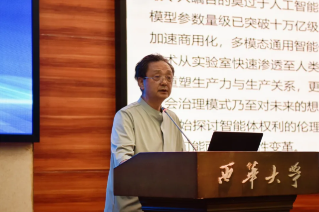 电子科技大学吴满意教授围绕人工智能时代思想政治教育理论创新展开讨论,聚焦变与不变的核心议题,探讨了矛盾关系、动力机制、场域差异、结构优化等内容指向,以及对技术反噬等问题的价值反思。