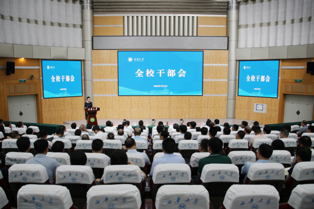 李秋实通报学校年度重点任务推进情况和科研工作进展,系统总结上半年取得的阶段性成果。他提到,今年以来,学校系统谋划“十五五”,全力冲刺目标任务,坚持以一流平台聚一流团队,学科建设取得新成效,综合排名稳中有升;高位推进人才强校,完善人才引育机制,着力引进国家级人才,全面做好人才服务保障,有效促进教学科研水平提升;深化教育教学改革,提升人才培养质量,加强“金专”“金课”“金师”打造,切实以赛促学、以赛促创,形成相关优秀案例和典型经验;推进考核评价改革,激发办学治校活力,开展人事人才工作大讨论,完善多元考核评价制度体系,激励全校干事创业、跳起摸高;全面办好民生实事,提升师生满意指数,数字西华推广建设,办学条件不断提升,职工服务传递“西华温暖”。此外,通过持续推进科技创新,全校学术科研呈现出良好态势,课题申报、科技获奖、成果转化等卓有成效,对高质量发展的支撑作用进一步突显。