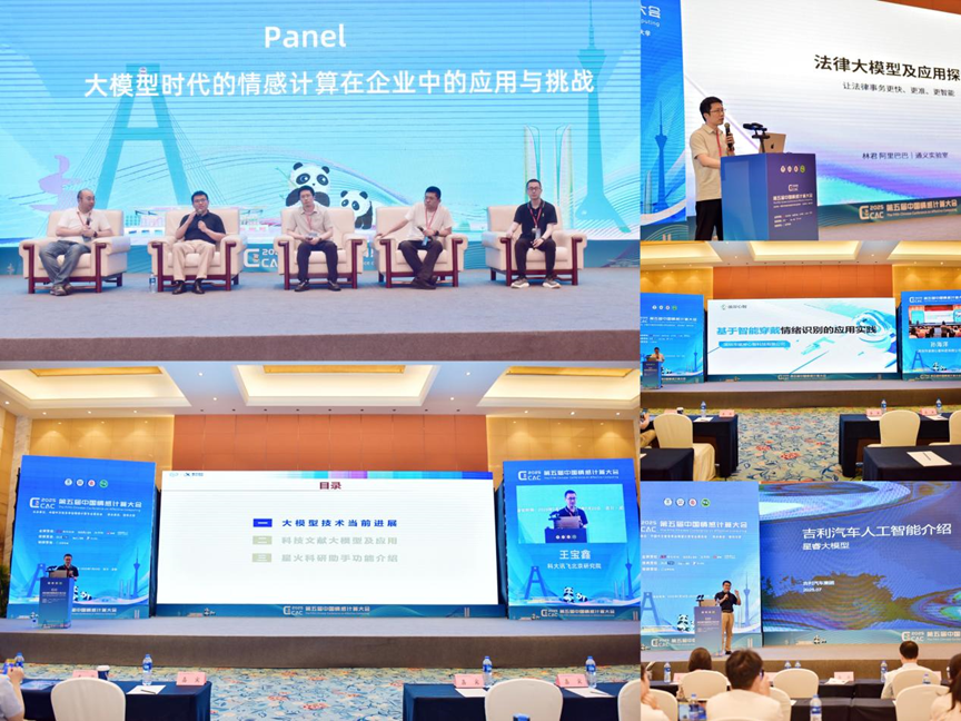 大会还组织了评测论坛和企业论坛。本次大会评测共组织了多模态交互中的情感变化推理、第五届智慧论辩评测、四格漫画理解评测、中文多模态讽刺计算以及细粒度比拟句情绪分析,多家机构参与评测。在企业论坛环节中,科大讯飞、吉利汽车、阿里巴巴、彼岸心智等企业的技术负责人展示了各家企业在情感计算、大模型领域的最新研究成果。