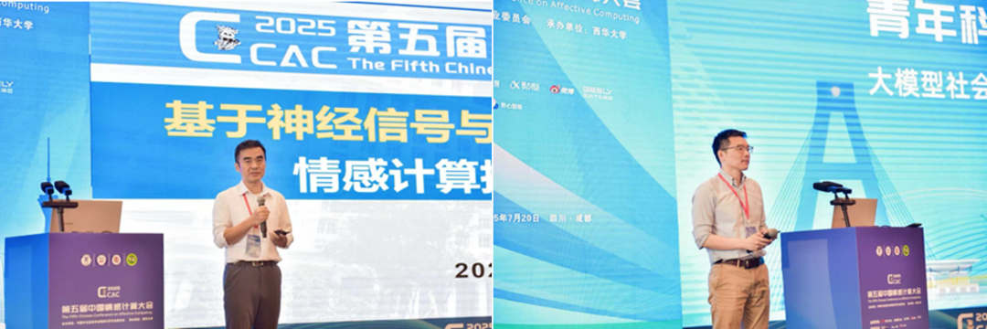在青年科学家报告环节中,哈尔滨工业大学(深圳)张治国研究员、复旦大学魏忠钰副教授分别介绍了基于神经信号与行为数据双轨并进的情感计算技术、大模型社会模拟的对齐与学习等方面的相关研究成果及未来的展望。