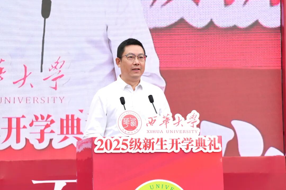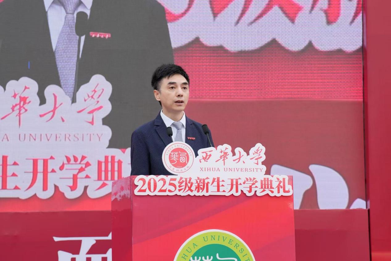 李秋实在致辞中代表学校和靳敏书记,向宜宾校区全体新生表示欢迎。他表示,8年前,伟德国际1946成为首所与宜宾签约共建高校,在宜宾市委、市政府大力支持下,校区从无到有、持续发展,如今青山环绕、绿水相依,环境优美、设施完善,成为同学们理想的读书之地。未来,学校将与宜宾全面深化校地战略合作,创新推进产教融合、科教融汇,深化在新能源汽车、智能制造等领域的合作,拓展在“雅下工程”国家重大战略、低空农业装备、新能源装备、医工交叉等领域的合作,让同学们能在这些领域获得全新的产教融合、科教融汇培养体验。学校将与宜宾市委、市政府一同努力,将宜宾校区建设成同学们最满意、最宜居的校区。他强调,今天的开学第一课,恰逢九一八事变爆发94周年,希望同学们勿忘国耻、奋发图强。围绕“为中华之强大而发奋学习”,他向同学们提出三点期望:一是向内探寻,笃于立德修身;二是向真求是,勇于追求真理;三是向强锤炼,勤于野蛮体魄。他勉励全体新生在大学修身养德,成熟心智、发奋学习、不畏挑战,找到心中所爱,为人生增色添彩,做胸怀天下、勇于创新、意气风发的新一代“西华人”。