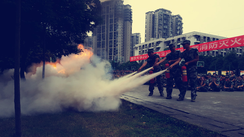 演练过程中,保卫处消防科科长现场为演练同学教授灭火器使用方式及注意事项,参练同学进行实操演练。经过保卫处老师的悉心指导,参练同学基本掌握灭火器的使用,消防实操演练达到预期效果。