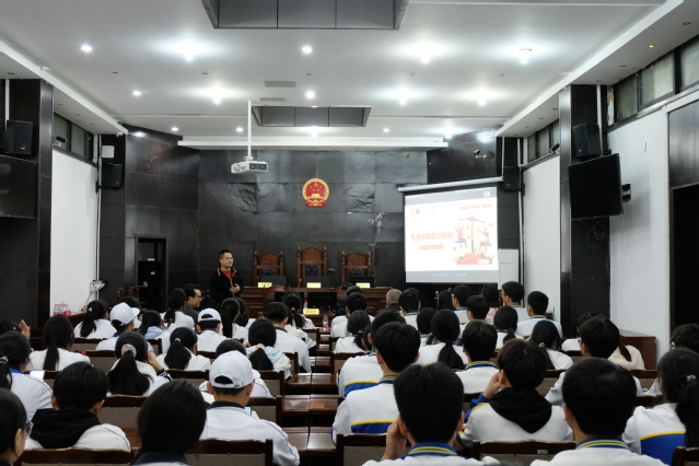 在法学与社会学学院的模拟法庭实验室,同学们参加了《生活中的民法密码》主题讲座,聚焦高中生网购与直播打赏等现实议题,增强了法律风险意识。