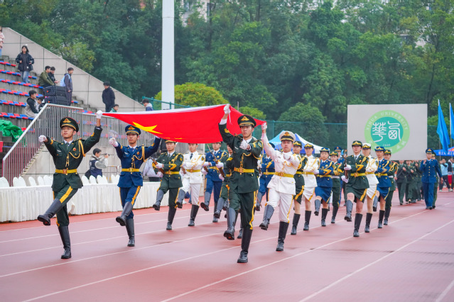 在《运动员进行曲》的激昂旋律中,运动会盛大开幕。各支方队带着饱满的精神,身姿挺拔,目光坚定,迈着整齐划一的步伐走向主席台。他们的目光传递着青春能量,响亮的口号展示着西华风貌。航空航天与智能装备学院方队手握模型,尽显航空人的创新活力与实干精神;音乐与舞蹈学院方阵舞姿曼妙,尽显蓬勃朝气和青春活力;电气与电子信息学院方队目光专注,展现科技风采与探索热情;汽车与交通学院方队在方程式赛车引领下,以严谨姿态与硬核实力,彰显创新底气;国际教育学院方队的留学生们身着各国服饰,尽显文化交流的包容与魅力……体育学院方队压轴登场,一段活力四射的体育舞蹈,瞬间点燃全场激情。各方队步伐铿锵,目光炽热,激情交织,为运动场注入了蓬勃的青春气息。