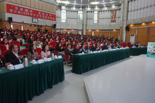 10月29日,“青眼相待∙海纳百川”青川县2025年引才专场宣讲活动在四教报告厅举办。党委常委、副校长费凌出席宣讲会并致辞。青川县委书记、1995级包装工程专业校友李方甫围绕2025年公开引进高层次人才及急需紧缺专业人才工作作专题宣讲,邀请青年学子投身青川发展,积极参与地方建设,为青川高质量发展汇聚人才力量。青川县委常委、组织部长阳建华,相关县级部门负责人,学校招生与就业处、各学院有关负责人和校友代表参加活动。
