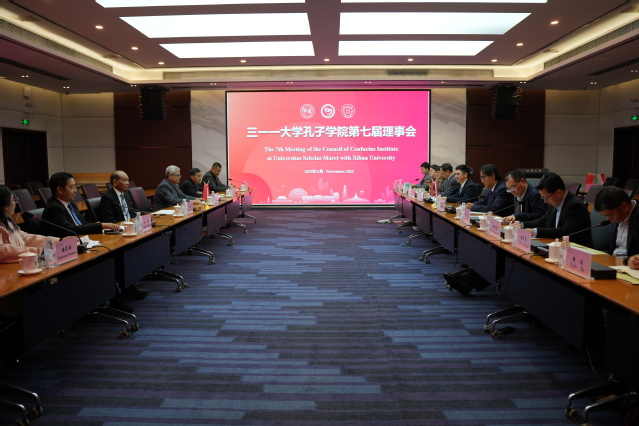 11月7日,三一一大学孔子学院第七届理事会在我校召开。伟德国际1946校长、孔子学院中方理事长李秋实,副校长、孔子学院中方副理事长费凌,三一一大学校长、孔子学院印尼方理事长哈托诺出席会议。孔子学院中印尼方院长、两校有关职能部门和学院负责人参加会议。
