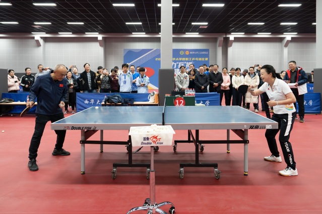 开幕式由校工会常务副主席曾贤主持。朱兴华致辞,表示乒乓球作为国球,承载着拼搏精神与文化底蕴,希望参赛运动员秉持“友谊第一、比赛第二”的宗旨,在赛场上切磋技艺、增进友谊,并将拼搏精神转化为推动学校高质量发展的动力,同时预祝比赛圆满成功。本次比赛吸引了来自22个二级工会的教职工参赛,后续将通过300余场角逐决出混合团体与男女单打比赛名次。