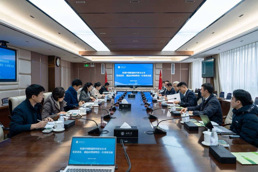 近日,中国联通四川省分公司党委委员、副总经理聂明岩一行来校交流,党委书记靳敏在办公楼212会议室与来宾座谈。双方围绕数字化转型、智慧校园建设、产学研融合等进行深入交流。党委常委、副校长山述兰主持座谈会。党政办公室、党委宣传部、科技处负责人参加会议。