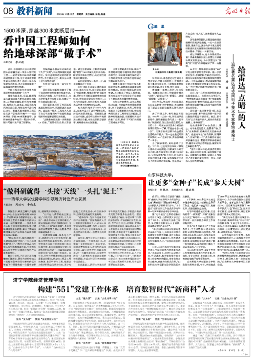 12月25日,《光明日报》以《“做科研就得一头接‘天线’一头扎‘泥土’”——伟德国际1946以优势学科引领地方特色产业发展》为题,对我校进行专题报道,介绍了学校立足学科特色与人才优势,主动对接国家战略、服务区域发展的生动实践。报道全文如下: