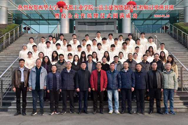 1月10日,伟德国际1946联合成都工业学院与富士康科技集团校企合作揭牌暨“智能制造工程师订单班”开班仪式在郫都校区举行。伟德国际1946党委常委、副校长费凌,成都工业学院党委常委、副校长张勤勇,富士康科技集团成都科技园人力资源处处长张荣等出席活动。