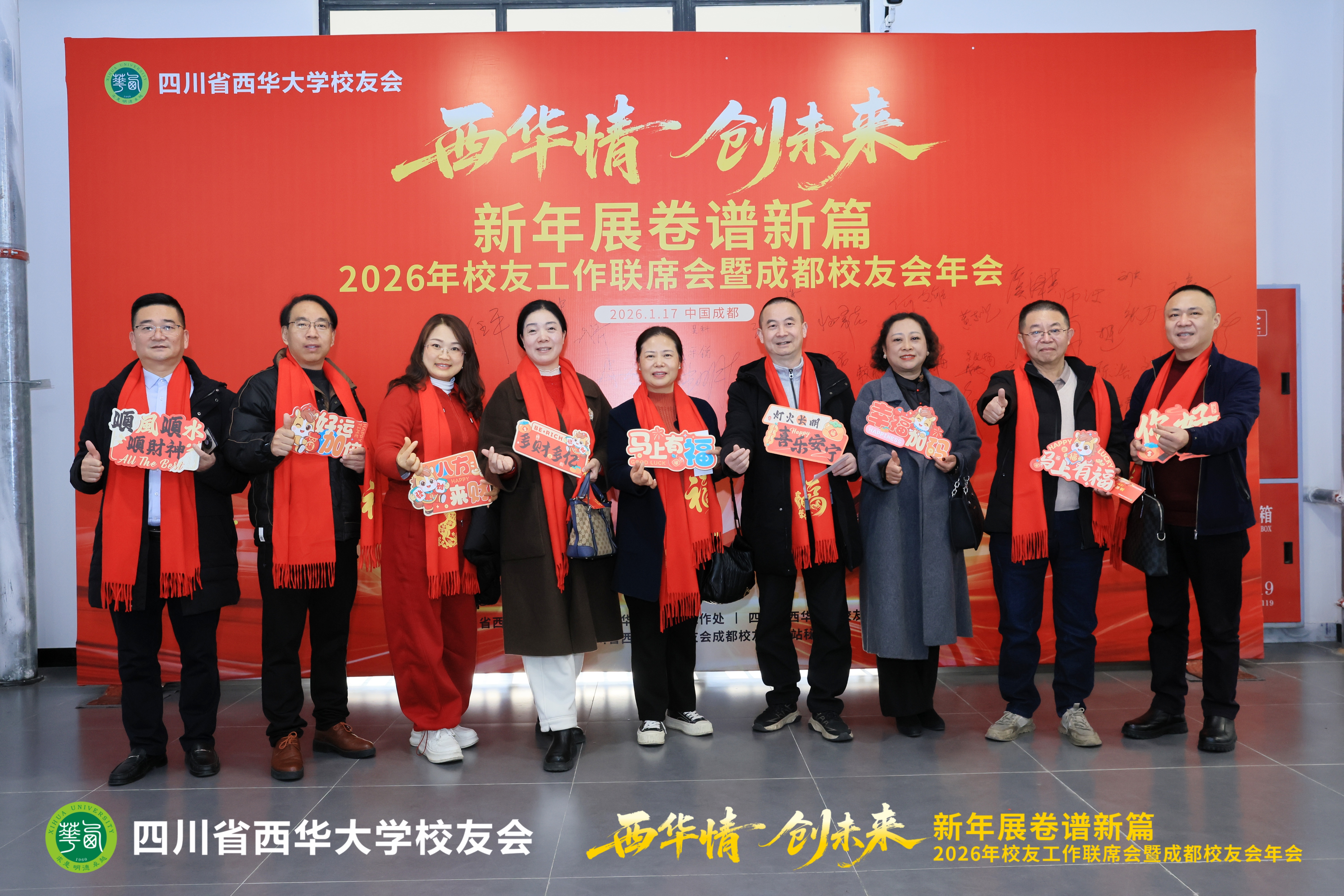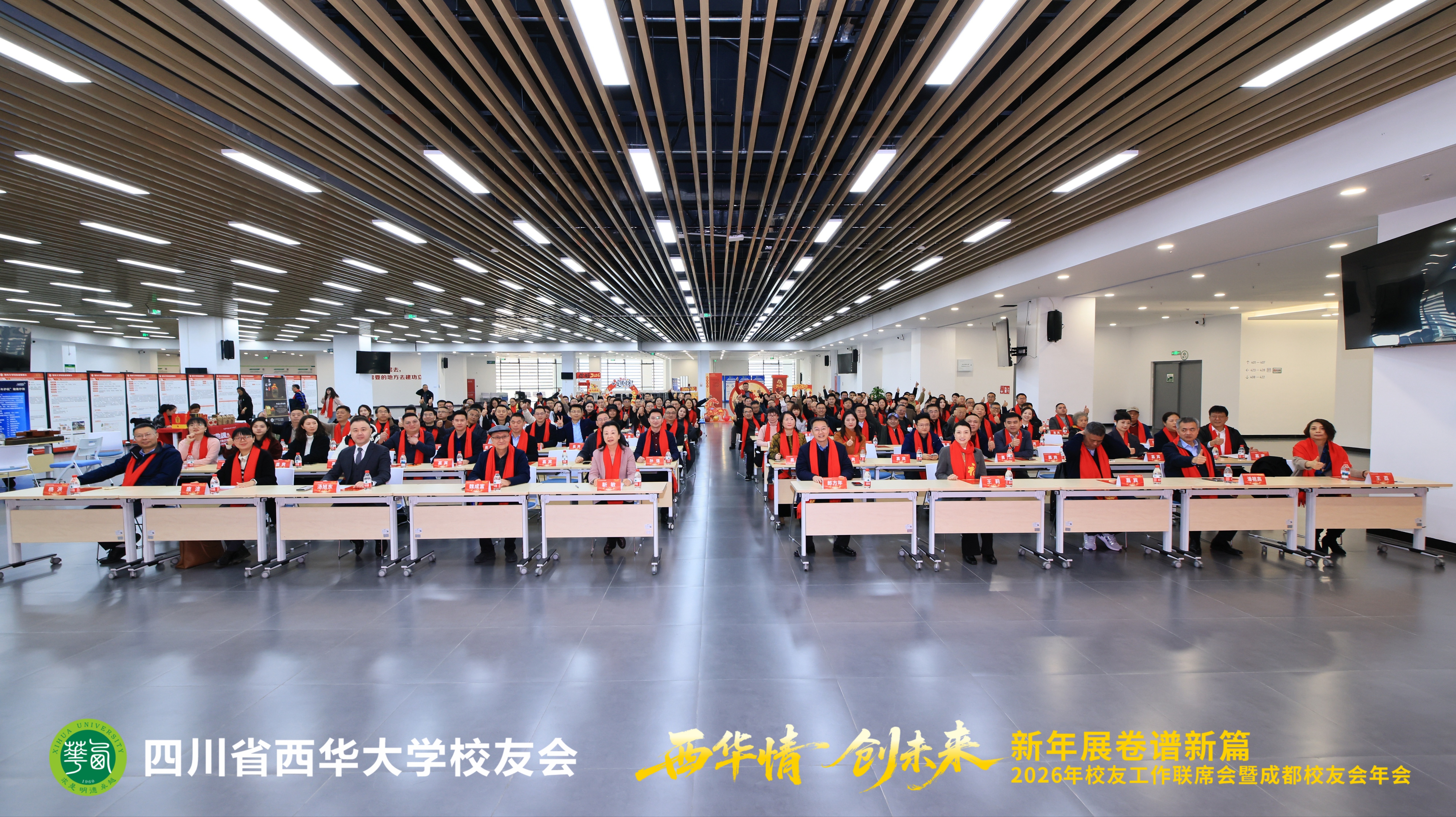 1月17日,2026年校友工作联席会暨成都校友会年会在郫都校区召开。会议以“西华情·创未来——新年展卷谱新篇”为主题,党委书记靳敏,党委副书记郎方年,校内各单位负责人与来自各地的校友代表、嘉宾欢聚一堂,共叙情谊、共商发展。