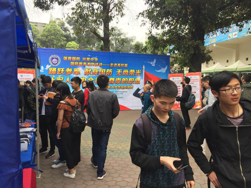 部队是大学生成长成才的大学校,是砥砺品质、增强意识的好课堂,是施展才华、成就事业的大舞台。为实现新时期强军目标,全面建成世界一流军队,加强国防和军队现代化建设,迫切需要一大批有责任、敢担当、有志向的大学生携笔从戎、报效祖国。为了更好地动员我校学生踊跃报名参军,2018年4月10日,党委武装部在一食堂外开展了征兵宣传活动。