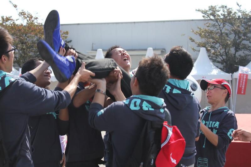 比赛顺利完成后队员们欢呼