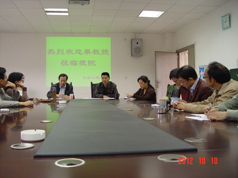 10月10日下午4点,中药标准化技术国家工程实验室主任、中国科学院上海药物研究所果德安教授来校,受到学校领导热情欢迎。校长孙卫国为果德安教授颁发了伟德国际1946特聘客座教授聘书,生物工程学院党政领导参加了授聘仪式。 孙卫国校长向果德安教授(左一)颁发特聘客座教授证书 果德安教授与学院教师作学术交流 |