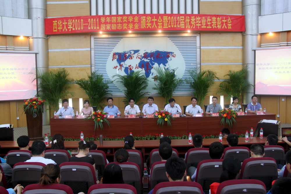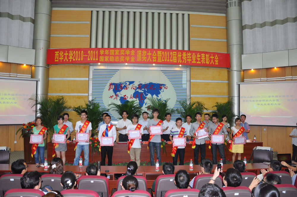 6月12日下午3:00,我校2010-2011学年国家奖学金、国家励志奖学金颁奖大会暨2012届优秀毕业生表彰大会在四教报告厅隆重举行。校党委副书记王小林,副校长王政书,校党委常委、校长办公室主任费凌,党委组织部部长唐润华,招生与就业处处长阮永生,校团委书记蒋志勇,党委办公室副主任蓝进,研究生部副部长李玲,计划财务处副处长江林出席了表彰大会。各学院分管学生工作书记(副书记),学生工作办公室主任以及各学院受表彰学生及学生代表参加了表彰大会。表彰大会由学生工作部部长徐元彬主持。 王小林副书记代表学校党委、行政向获奖同学表示热烈的祝贺,对各位教职员工的辛勤付出表示衷心感谢。他指出,近年来,学校办学水平不断提高、办学实力持续增强、各项事业快速发展,形成了目标明确、措施有力、人心齐聚的良好发展局面。学校的改革离不开广大学生的理解与支持,学校的壮大离不开广大学生的付出与参与,学校的发展更将为广大学生的发展创造更好的空间和平台。他希望获奖同学珍惜荣誉,以此为新的起点,勤奋学习,谦虚谨慎,把个人的命运与祖国的命运紧密结合起来,时刻心系民族复兴、心系国家发展、心系人民福祉,在报效祖国、服务人民中实现自己的人生价值;希望广大同学以获奖同学为榜样,珍惜宝贵的学习机会,勤于学习、善于创造、甘于奉献,掌握扎实本领,全面提高自身素质,在建设创新型国家中勇挑重担;希望2012届毕业生心怀感恩,情系母校,脚踏实地,笃行有为,在回报社会中成就一番事业,为母校增光,为西华添彩! 副校长王政书宣读了《教育部关于2010-2011学年度国家奖学金获奖者的公告》、《伟德国际19462010-2011学年度国家励志奖学金获奖学生名单》、《四川省教育厅关于公布2012届四川省普通高等学校优秀大学毕业生评选结果的通知》和《伟德国际1946关于表彰2012届校级优秀毕业生的决定》。 表彰会上,举行了各类奖项的颁奖仪式。所有获奖学生身披绶带领奖,会场气氛隆重而热烈。国家奖学金获得者人文学院陈蓓蕾、省级优秀毕业生材料科学与工程学院周超作为获奖代表作了发言。 据悉,今年我校共有74名学生获得2010—2011学年国家奖学金,1182名学生获得2010—2011学年国家励志奖学金,各类优秀毕业生590人,其中省级优秀毕业生99人,校级优秀毕业生491人。