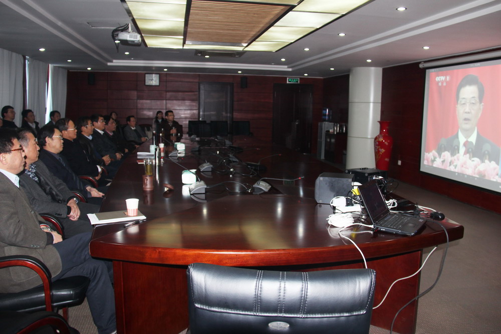 校党委中心组成员集中收看十八大开幕式