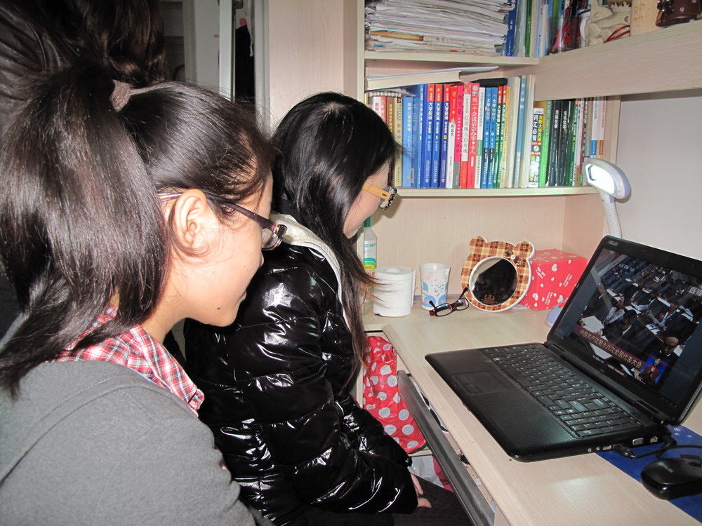 同学们在寝室观看十八大开幕式