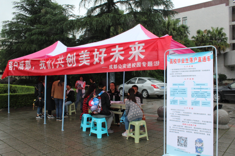 此次活动,是成都公安部门首次来我校进行的以户籍政策为主题的宣传活动。公安办证中心的警官主要从入户对象、入户流程、入户手续以及落户区域等方面对前来咨询的学生进行现场解答,解决了部分学生落户成都的后顾之忧。