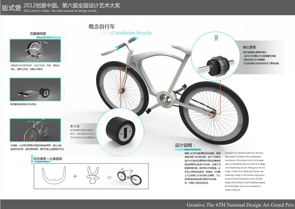 王研、叶秀洪同学设计的概念自行车获工业设计作品类别一等奖 |