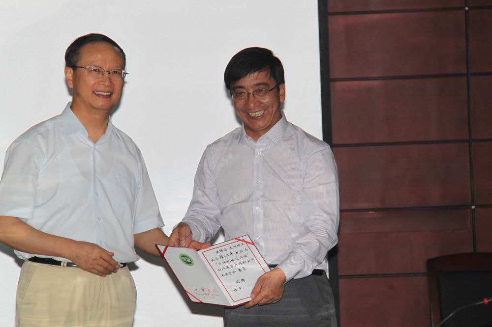 四川省科技厅副厅级巡视员郑超英为“流体机械及工程”四川省重点实验室主任刘小兵教授颁发聘书