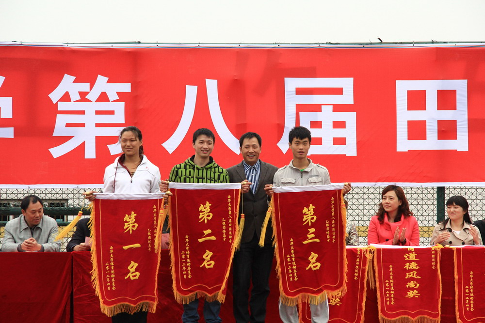 4月12日下午,伟德国际1946第八届田径运动会经过两天的赛事,完成了所有项目比赛,圆满落下帷幕。学生工作部、各学院负责学生工作的负责人参加了闭幕式。本届运动会裁判长、体育学院教师侯金成主持闭幕式并宣布比赛成绩。 在经过精彩的角逐后,本次运动会有多个项目刷新了我校田径运动会记录,体育学院2010级李欣悦、2011级翟文华双双破女子乙组铅球校记录;体育学院2010级陈林破男子乙组铅球校记录。甲组中的建筑与土木工程学院以346的高分勇夺团体积分榜桂冠,刷新了名次排行;应用技术学院排名第二;电气信息学院获第三名;交通与汽车工程学院、管理学院、能源与环境学院、材料科学与工程学院、艺术学院紧随其后。乙组中实力也难分伯仲,最终体育学院体育教育2010级2班夺得第一,体育教育2011级1班排名其次,体育教育2011级2班获第三。 大会还颁发了本届运动会体育道德风尚奖,后备军官学院、建筑与土木工程学院、管理学院、能源与环境学院、艺术学院、人文学院、经济与贸易学院、体育学院获此殊荣。在欢快的音乐声中,与会领导分别为获奖团体颁奖。 教职工第八届运动会团体总分前三名分别是:机关一、应用技术学院、后勤服务总公司。 两天的比赛时间里,各项赛事开展得井井有条、激烈精彩,整个运动场活力四射,激情洋溢,充分展现出了伟德国际1946师生奋发向上、吃苦耐劳、顽强拼搏、团结互助的精神风貌。