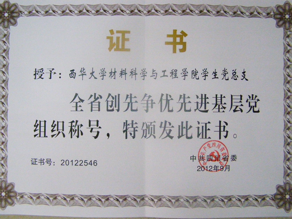 9月20日,四川省创先争优总结表彰大会在成都市金牛宾馆隆重举行。省委书记、省人大常委会主任刘奇葆,省委副书记、省长蒋巨峰,省政协主席陶武先、省委常委、组织部部长柯尊平、省委常委、成都市委书记黄新初等领导出席了会议。600个基层党组织、190名共产党员以及10个县(市、区)党委受到大会表彰。我校材料科学与工程学院学生党总支荣获“全省创先争优先进基层党组织”称号,并作为全省教育系统基层党组织获奖代表上台领奖。 会议首先由省委常委、组织部部长柯尊平宣读省委表彰决定。省委决定:授予成都市锦江区双桂路街道党工委等600个基层党组织“全省创先争优先进基层党组织”荣誉称号,授予肖文忠等190名共产党员“全省创先争优优秀共产党员”荣誉称号,授予成都市锦江区委等10个县(市、区)党委“全省创先争优活动先进县(市、区)党委”荣誉称号,追授菊美多吉等10名同志为“全省创先争优优秀共产党员”荣誉称号。接着刘奇葆、蒋巨峰、陶武先、柯尊平、黄新初、刘玉顺等省委领导分别为获得表彰的先进集体和优秀个人代表共计29人颁奖。 表彰会上,凉山州委书记翟占一、江油市市长马辉、国家电网四川电力成都高新区服务队支部书记刘源、崇州市桤泉镇党委书记、镇人大主席王成龙、仁寿县信访局局长吴菊芬等同志作为先进典型代表分别作了大会交流发言。 最后,省委书记刘奇葆作重要讲话。他首先对获得表彰的先进集体和优秀个人表示热烈祝贺。他指出,创先争优活动以深入学习实践科学发展观、推进“两个加快”为主题,以推动科学发展、社会和谐、服务人民群众、加强基层组织为目标,践行为民宗旨,服务人民群众,为进一步加强和改善党的建设积累了宝贵的经验,为在新形势下推动党的建设不断取得新的更大成效提供了有力依据。他强调,要始终把人民富裕幸福作为党和政府的全部工作根本目标,在造福人民的实践中具体体现党的先进性和纯洁性,以创先争优新成绩迎接党的十八大胜利召开。 全省教育系统在本次创先争优活动中获得表彰的先进集体和个人共计15个,其中我校材料科学与工程学院学生党总支荣获“全省创先争优先进基层党组织”称号,这是我校基层党组织首次获此殊荣,在受邀上台领奖的全省29名代表中,材料学院学生党总支书记郭忠林作为全省教育系统基层党组织获奖代表上台接受省委领导的颁奖。 我校材料科学与工程学院学生党总支在校、院党委的带领下,以学生党建工作为龙头,所属9个学生党支部在2010至2012年创先争优活动中涌现出了一大批优秀学生干部和先进党员,他们在促进学校校风、学风、考风建设和学生党建工作中作出了表率,充分发挥了基层党组织的战斗堡垒作用,2011、2012年分别被评为“伟德国际1946先进基层党组织”荣誉称号。