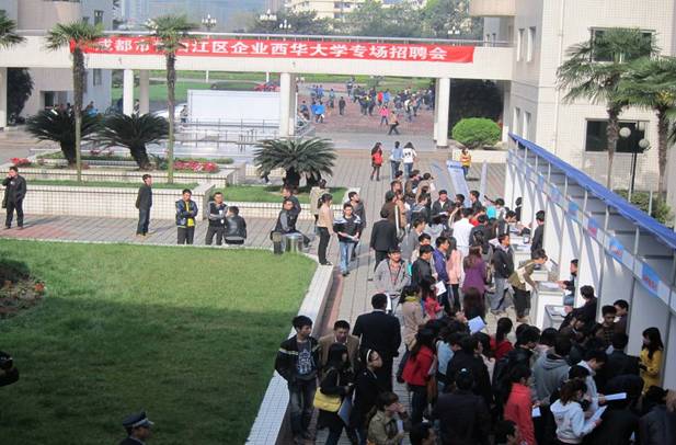 3月31日上午,我校在三教中心花园举办了由青白江区人力资源与社会保障局牵头组织的区重点企业专场双选会。川化集团、攀钢集团成都钢钒有限公司、四川三洲川化机核能设备制造有限公司、中国重汽集团成都王牌商用车有限公司等28家企业来校,招聘专业涉及机械、电气、会计、工商管理等,提供岗位300余个。 3月14日,副校长蔡汉军带领地方合作与服务处、科技处、招生就业处和相关学院负责人前往青白江区,与区科技局、经信局、人力资源与社会保障局、发改局、工管委、车管委、南管委等部门负责人洽谈校企合作事宜,达成了校地合作意向。之后,在学校招生与就业处的邀请下,促成了这次双选会。 同时,本次招聘会也为我校因为考研等原因目前还未就业的2012届毕业生提供了非常及时的就业机会。3月30日,2012年全国硕士研究生考研成绩分数线公布,部分考研没有成功的同学开始关注就业信息,寻找就业机会。 据悉,2012年全国将有680万高校毕业生,就业形势依然严峻。为帮助毕业生就业,我校积极采取各种办法,千方百计收集需求信息,拓展就业渠道。为节约同学们的求职成本,营造良好的就业环境,学校努力争取用人单位来校召开现场双选会。近一个月来,我校已召开中小型双选会2场、专场80余场,为同学们提供了2000余个岗位需求。临近学生毕业之际,学校将一如既往地积极联系用人单位来校举办专场双选会,也希望目前还未就业的毕业生及时调整心态,牢固树立“先就业、后择业”的就业观念,顺利找到自己满意的工作岗位。