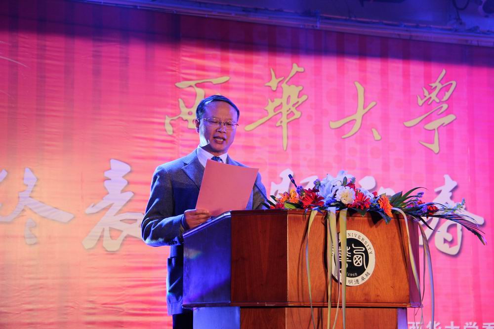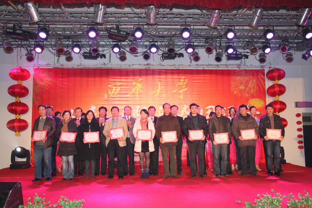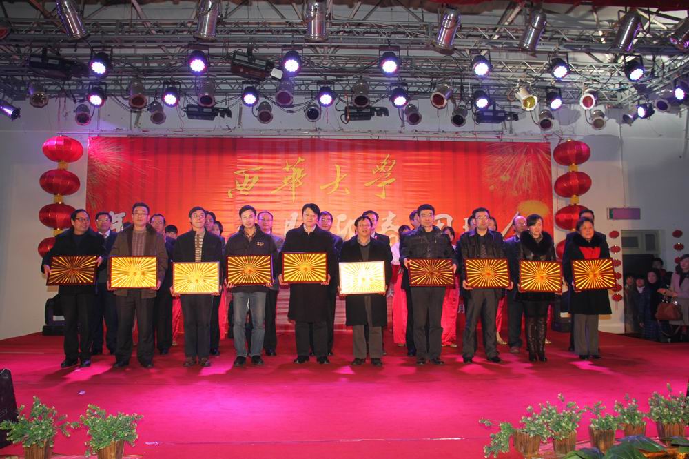 “沐兔年瑞气,师生合力描绘西华发展美景;迎龙岁祥光,校院齐心谱写教育改革新篇。”满载着2011年的累累硕果,怀着对2012年的美好期盼,1月5日晚7:00,我校迎来了一年一度的年终表彰暨迎春团拜会。校学生活动中心张灯结彩,欢声笑语,暖意浓浓,到处洋溢着和谐喜气的气氛,全体校领导、校级干部,副处级以上中层领导干部、学院分工会主席,离退休校领导,四川省和成都市党代表、人大代表、政协委员,省文史馆馆员,民主党派主要负责人、侨联、台谊会主要负责人及教师代表、职工代表和西华社区代表等共320余人在这里欢聚一堂,载歌载舞,共享2011胜果,展望美好未来。 晚会前,校党委书记张小南致辞。张书记代表学校党委、行政向全校师生员工致以节日的问候与祝福,向一年来为学校改革发展而辛勤工作的教职员工表示感谢。张书记在致辞中满怀激情地回顾了2011年学校取得的成就。他指出,2011年是学校“十二五”规划的开局之年,是学校在沉淀50年办学历史基础之上继往开来、奋发进取、喜获丰收的一年。一年来,学校以科学发展观为统领,认真学习贯彻国家和四川省《中长期教育改革和发展规划纲要》,深入贯彻落实第一次党代会精神,积极实施“三步走”发展战略,加强调查研究,强化规范管理,狠抓任务落实,坚持以提高人才培养质量为核心,以学科建设为龙头,以师资队伍建设为关键,以党的建设为保障,以对外合作交流为平台,改革创新,奋发进取,各项事业取得长足发展。 张书记强调,2012年,是推进实施“十二五”规划的第二年,也是推动学校迈向发展新阶段的关键一年,要继续以科学发展观为统领,以学习贯彻十七届六中全会、省委九届九次全会精神为契机,以迎接党的十八大召开为动力,立足校情,进一步解放思想、脚踏实地,坚持群众路线,加强调查研究;注重内涵发展,教学上质量,科研出精品,学科建特色,管理服务出效益;依法治校,规范管理,以人事分配改革工作为契机,推进管理重心下移,权力下放,充分调动发挥二级学院和广大教职工的积极性和主动性;注重外引内培,加强人才队伍建设,尤其要把对青年人才的培养提升到学校发展的战略高度上来;强化机遇意识,千方百计争取外部资源,积极搭建学科建设平台,为学校发展创造良好的外部和内部环境;坚持以人为本,在发展的同时高度重视教职工的切身利益,充分体现发展为了教职工,发展依靠教职工;继续发扬“知难而进、自强不息”的西华精神,用更加坚定的信念攻坚克难,用更加辉煌的成绩书写2012年学校事业科学发展的新篇章! 团拜会在视频短片《兔年回望》播放中拉开了帷幕。电视片回顾了学校201年的大事和取得的主要成绩。晚会节目精彩纷呈。整台晚会共分为回首、感动和展望三个篇章。晚会节目内容丰富、形式多样,既有文艺节目的表演,也有互动游戏的参与,充分展示了我校在改革发展中积极向上、奋发前行的精神风貌。辛勤工作了一年的老师们纷纷登台献艺,用丰富多彩的文艺表演来抒发他们心中的喜悦和热情。幽默风趣的三句半《特色学院齐拜年》、激情四射的舞蹈《走在山水间》(画外音)、热情洋溢的诗朗诵《与西华相约》和富有地方特色风格的四川清音《共建美好新四川》等一个个精彩的表演,以其独特的表达方式展示了过去一年学校取得的瞩目成就以及对来年的美好期盼与祝福,唱响了一曲曲振奋人心的新春之歌,把整个晚会推向一个又一个高潮,现场掌声不断,笑语连连。喜迎新春幸运抽奖环节更是充满悬念和期待,在各位老师的热情欢呼声中,由张书记和孙校长为8位幸运观众抽奖,并亲自为他们颁奖。 晚会现场,学校举行了隆重的颁奖仪式。校长孙卫国宣读了2011年度学校先进集体奖、突出贡献单项奖获奖名单,校党委书记张小南宣读了2011年度学校优秀干部名单。全体校领导为获奖单位和个人颁了奖,呈现出一片尊师重教的浓浓氛围。 今年的团拜会,“微博送祝福”现场互动成了一道靓丽独特的风景线,学生们通过伟德国际1946官方微博、西华青年网和伟德国际1946微博联盟向老师们发来祝福,表达了对老师们培育之恩;教师们通过微博表达了对学校发展的美好祝愿。 伴着优美的旋律和美妙的歌声,各位参会老师相互致意,互赠祝福,持续近两个小时的团拜会气氛热烈,洋溢着一派欢乐祥和的景象。 最后,我校2011年终表彰暨2012迎春团拜会在歌伴舞《田野的春天》的精彩表演中圆满结束。