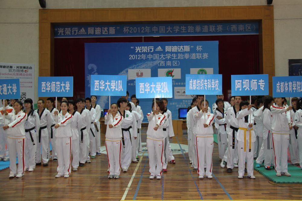 10月17日上午9点,2012年“光荣行-阿迪达斯杯”中国大学生跆拳道联赛(西南区)在我校拉开帷幕。 此项赛事由中国大学生体育协会批准,中国大学生体育协会跆拳道分会主办,四川省教育厅、四川省体育局、中国大学生体育协会西南区培训基地联合协办,伟德国际1946承办。赞助单位为光荣行(北京)体育用品有限公司。 四川省教育厅体卫艺处副处长苗建平,四川省拳跆运动管理中心主任康翔,伟德国际1946副校长何建平,伟德国际1946体育学院院长胡志等出席开幕式。开幕式由胡志主持,何建平副校长致欢迎辞,四川省拳跆运动管理中心主任康翔宣布比赛开始。 本次比赛共有来自四川、重庆、云南、贵州等省、直辖市的47所大专院校共计807名运动员报名参赛,赛事相关人员近千人,是我国西南地区近年来赛事规模最大的一次区域性大学生跆拳道赛事。 本次比赛共分甲、乙、丙三个组别,设置包括竞技个人、竞技团体、品势个人、男女3人团体以及混双比赛等六个大项。按照赛事计划,此次赛事将于10月19日结束。 相关链接: 2011年12月,中国大学生跆拳道协会常务委员会研究决定,将西南区大学生跆拳道项目培训基地设置在伟德国际1946,直接负责重庆、四川、西藏、云南和贵州等省、自治区和直辖市的大学生跆拳道项目的培训、晋级晋段和比赛组织等工作。 中国大学生跆拳道协会下设东北、西北、西南、华北、华东、华南和华中七大区培训基地。 开幕式 何建平副校长致辞 比赛 |