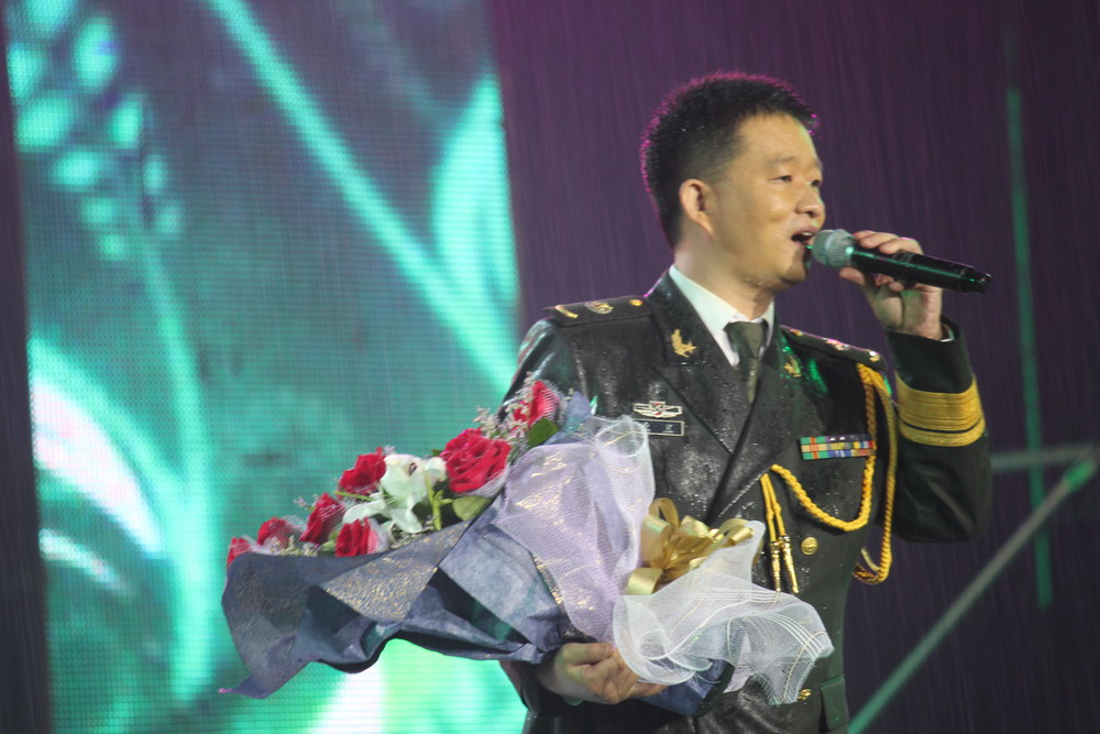 战旗文工团小曾冒雨演唱《军中绿花》 |