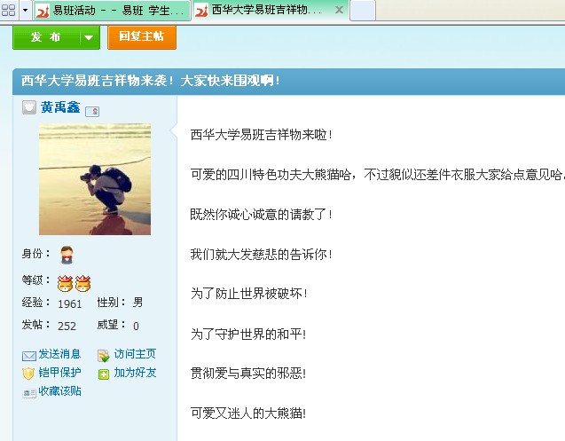 近段时间,伟德国际1946易班活动频繁,易班优秀集体奖申报活动、制作伟德国际1946易班吉祥物、“四六级考前辅导”活动、“易班形象大使”选拔活动、伟德国际1946易班logo和登陆页面评选初赛、伟德国际1946班级创意全家福等活动先后展开。通过线上、线下活动的良好互动,更好地发挥了易班服务学生、营造良好学习氛围的作用。 活动一:易班发展中心开展易班优秀集体奖申报活动 为激励易班建设先进集体,加强各学院易班建设工作总结和经验交流,易班发展中心根据《伟德国际1946易班建设工作奖励办法》,组织开展了易班建设集体奖申报及评选活动。 评选活动设“伟德国际1946易班建设先进集体”10个、“伟德国际1946易班建设先进班级”10个。“先进集体”在21个学院中产生,“先进班级”在伟德国际1946易班已注册的900余个班级中产生。参评学院或班级向易班发展中心提交申报材料,易班发展中心根据各学院申报材料初选后,选择部分学院作现场陈述,最后根据综合评比成绩,评选出获奖学院。 活动二:易班学生工作站设计制作伟德国际1946易班吉祥物 日前,易班学生工作站通过广泛征集意见和内部讨论之后,制定了伟德国际1946易班吉祥物方案。 伟德国际1946易班吉祥物将在“上海易班21世纪熊”构思的基础上,大胆融入巴蜀特色,通过四川特有的世界级珍稀动物熊猫的原型,创造性地开发出具有浓郁四川特色的“西华易班21世纪功夫熊猫”吉祥物。 不久,“西华易班21世纪功夫熊猫”吉祥物将会和广大西华易友见面,届时西华易友们将有机会和可爱的“西华易班21世纪功夫熊猫”合影。 活动三:伟德国际1946易班logo和登陆页面评选初赛落幕 伟德国际1946易班logo和登陆页面设计大赛开展以来,受到了全校同学的广泛关注,同学参与大赛的积极性非常高,短短时间内,易班学生工作站就收到了100余份参赛作品。 经过学生工作站工作人员对作品的整理、归类,采取易班网络投票、各学院易班联系代表及工作站工作人员现场投票相结合的方式,选出了25份优秀作品。投票活动引起了西华易友的热烈反响,据不完全统计,投票帖总计浏览量达8000多,参与投票的人数达1800人。接下来,易班学生工作站将报送初选作品到学校易班建设工作领导小组和易班发展中心进行最终评审与修改,选出具有西华特色的易班logo和登陆界面。 活动四:易班学生工作站举行“四六级考前辅导”活动 6月16日,即将迎来今年我校第一场英语四六级考试。为了缓解同学们的紧张情绪,帮助同学们掌握迎考技巧,增强同学们考前冲刺的信心,易班学生工作站特邀外国语学院英语教学一部系主任徐红英老师和教学二部系主任李学芹老师,考前现场为广大同学解答四六级疑问。 本次活动采用易班微访谈、易班论坛和现场访谈相结合的方式开展。为了更好地宣传此次活动,除了在伟德国际1946易班发起活动外,易班学生工作站还进行了户外宣传和微博宣传。该项活动将采用网上跟帖抢票的方式抽取幸运观众,参加面对面的现场辅导。 本次“四六级考前辅导”是通过易班开展学习活动的有益尝试,通过线上、线下活动的良好互动,可以更好地发挥易班服务学生、营造良好学习氛围的作用。 活动五:各学院“易班形象大使”选拔活动持续火热进行 继交通与汽车工程学院、人文学院、物理与化学学院、材料科学与工程学院成功地在易班上开展形象大使选拔活动之后,机械工程与自动化学院、建筑与土木工程学院也相继跟进,纷纷开展“易班形象大使”选拔活动。 各学院的“易班形象大使”选拔活动持续升温,来自不同学院的同学们青春靓丽的照片吸引了西华易友和上海易友的广泛关注,在易班上引起了强烈反响。 不久,“伟德国际1946易班学生工作站明星代言人”将出现在伟德国际1946易班的各种活动中。 活动六:易班学生工作站启动伟德国际1946班级创意全家福活动 通过易班加强班级文化建设是易班的一大特色功能。近期,伟德国际1946首届“晒出班级创意全家福”活动正式启动。 本次活动由易班学生工作站策划,各学院积极相应,纷纷打造具有自身文化特色的“班级创意全家福”。目前,活动正在通过微博和户外展板的方式进行前期宣传。各学院的推荐作品正在紧锣密鼓创作中,不久将和广大易友见面。 届时,易班学生工作站将通过易班网络投票、户外喷绘等方式面向全校同学展示活动情况,征集全校同学的意见,评选出一个“五最班级”,由易班学生工作站赠送本次活动的礼品——全班集体电影票一套。 活动七:建筑与土木工程学院开展“先进易班”投票活动 近日,建筑与土木工程学院在易班发表帖子《★先进易班★来袭!先进易班评选活动旋风式进行中!!》,开始了土木学院2011级“先进易班”的评选宣传。 五月中旬,建筑与土木工程学院组织2011级各班拍摄班级VCR,对班级生活和班级文化进行集中展示。每个VCR都像一首青春乐曲,洋溢着年轻无极限的张张笑脸,反映了同学们集体生活的点点滴滴。 5月25日,建筑与土木工程学院开展了“先进易班”易班网上投票活动,根据视频质量和易班票数确定获奖班级。活动共设置了三个等级的奖项,综合成绩前三名分别获得一、二、三等奖。“先进易班”将获得奖金、奖状和各种精美奖品。 该活动得到了易班用户的热烈响应,投票贴浏览量达到2599,回帖量达