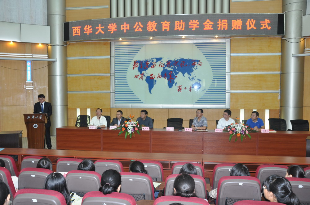 9月24日,中公教育助学金捐赠仪式在我校四教报告厅举行。中公教育集团助理总裁李国斌,集团西南地区负责人、四川分校校长丛德仁,伟德国际1946党委副书记王小林,副校长王政书,学工部部长徐元彬,人文学院党委书记王大清、院长谢应光出席捐赠仪式。捐赠仪式由王大清主持。
