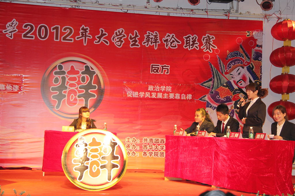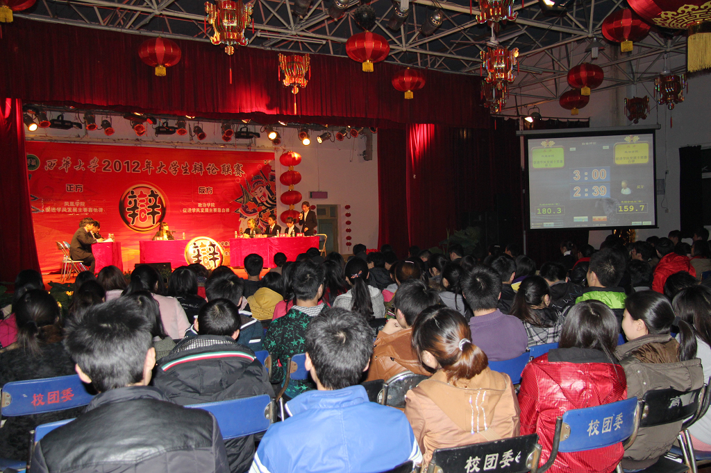 为了进一步加强校风、学风建设,营造良好的学术文化氛围,3月13日晚7:00,我校2012年度大学生辩论联赛在学生活动中心鸣锣开战。