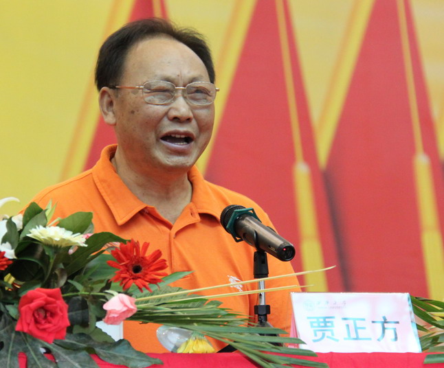 全国优秀共产党员、彭州市宝山村党支部书记、78岁高龄的贾正方作报告