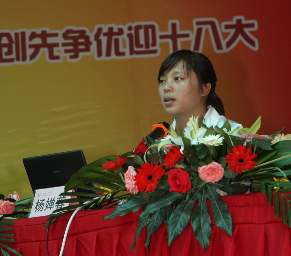 省大学生公推直选党支部书记、省优秀基层党组织书记杨婵蓉作先进事迹报告