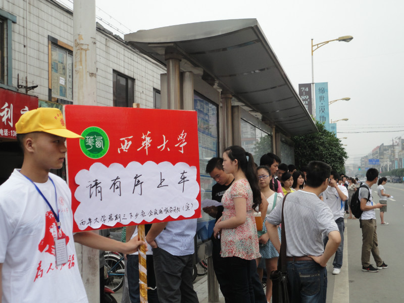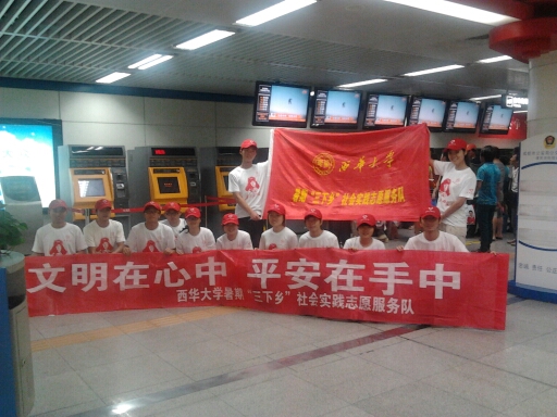 近日,我校暑期“三下乡”社会实践志愿服务队在成都火车北站、茶店子客运站、宽窄巷子和天府广场四个服务点同时开展文明交通劝导活动。志愿者们除开展“文明交通”志愿服务外,还进行了主题为“文明交通定格”的快闪活动,引起了社会广泛关注。 今年,我校暑期“三下乡”志愿服务交通文明劝导工作从6月底开始,持续近一周的时间,文明劝导活动的主要地点设在成都天府广场、宽窄巷子、茶店子客运中心和火车北站等人流量大的公共场所。 早上9点,志愿者们就已经按计划分别到达了各自服务地点,开展交通文明劝导志愿服务。在天府广场和宽窄巷子这两个成都市中心主要景点,开展提醒游客路人注意交通安全,劝导不文明现象,并拿着早就准备好的地图为问路的游客作向导。不少受到帮助的游客感谢志愿者们,并热情地邀请志愿者们到他们的家乡做客。而在火车北站和茶店子客运中心,志愿者们为旅客提供准确详细的乘车信息,帮助老弱病残群体搬运行李,并对车站内衣着不整、抽烟、随地乱扔垃圾等行为进行了劝导,也得到了广大旅客的理解和支持。同时,志愿者们的服务工作得到了火车北站管委会负责人的认可。 时值建党九十一周年的周末期间,市区出行的市民和外地游客都特别密集,为了让更多的人来关注交通文明、城市文明,志愿者们还在四个站点分别进行了“文明定格”快闪活动。《成都商报》、《腾讯大成网》和《四川在线》等媒体对此次活动进行了报道,并呼吁更多市民关注城市文明建设。